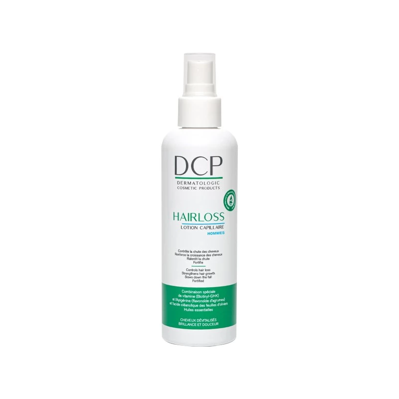 La Lotion Capillaire Hommes DCP HAIR LOSS (200ml) est un traitement anti-chute conçu pour les spécificités de la calvitie masculine. Elle fortifie les follicules pileux, stimule la microcirculation et prolonge le cycle de vie du cheveu. Une solution efficace pour redensifier la chevelure et ralentir la perte.